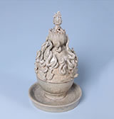 • 明素三彩贴狮首狮钮盖双耳三足陶香炉